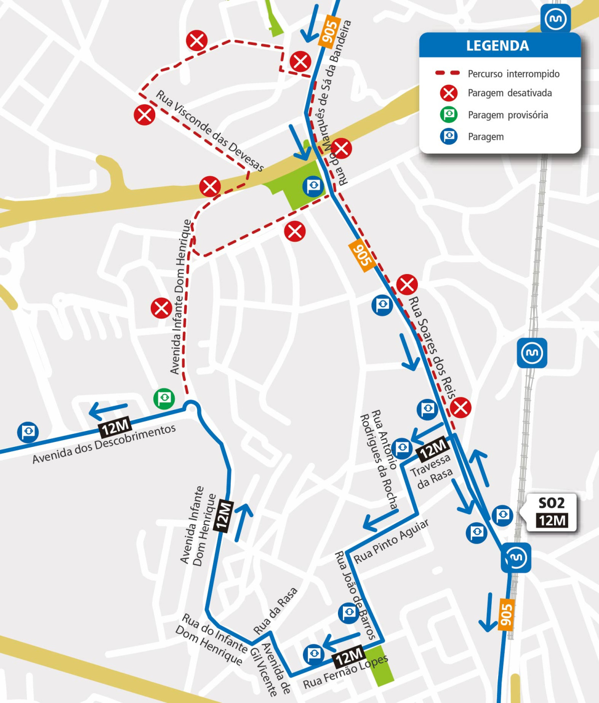 On April 16, 17, 21, 22, 27 and 28, and May 4 and 5, between 4:00 AM and 6:00 AM, due to roadworks on Rua Visconde das Devesas and Avenida Infante Dom Henrique (Vila Nova de Gaia), the vehicles on these lines will have the following route changes: