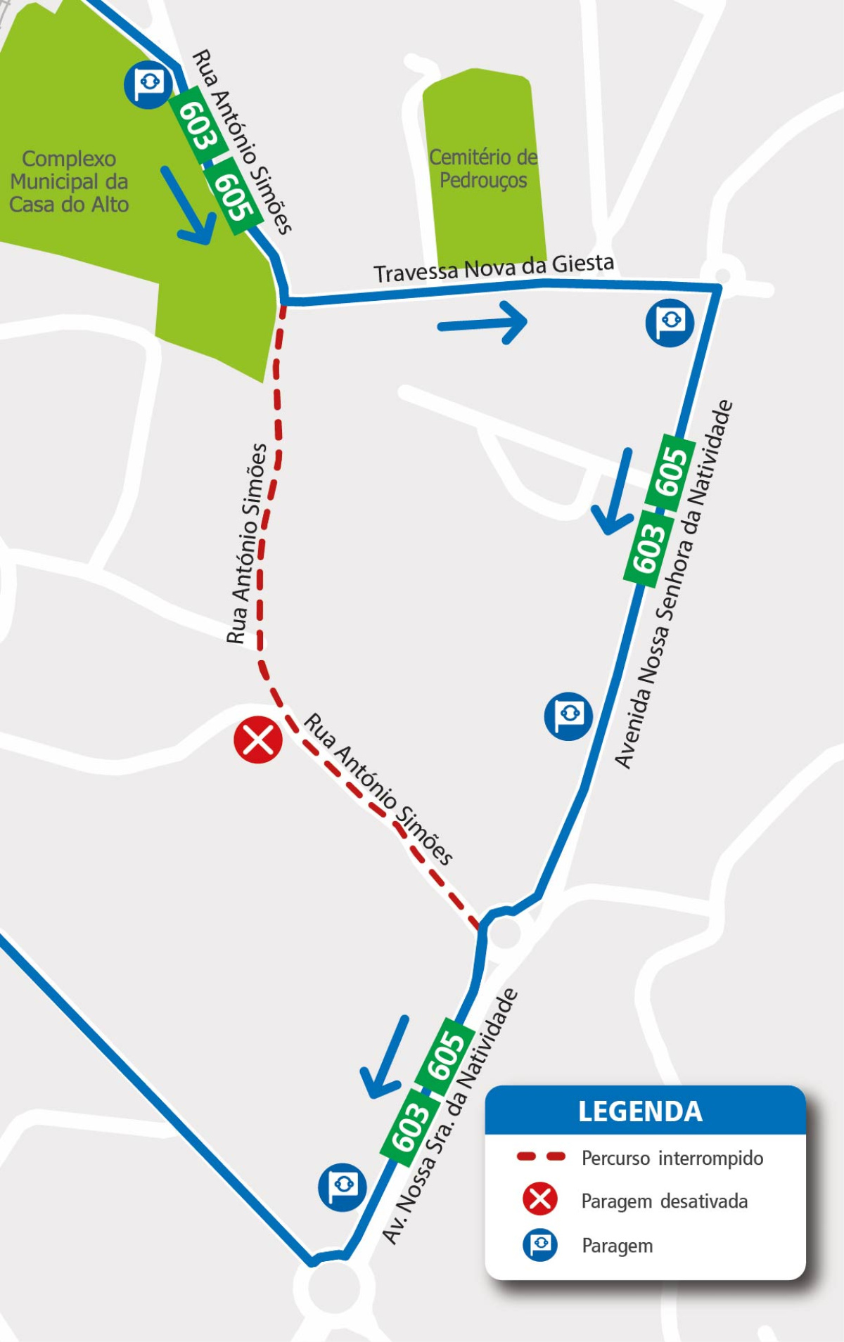 R. António Simões, Tr. Nova da Giesta, Av. Nossa Senhora da Natividade and normal route.